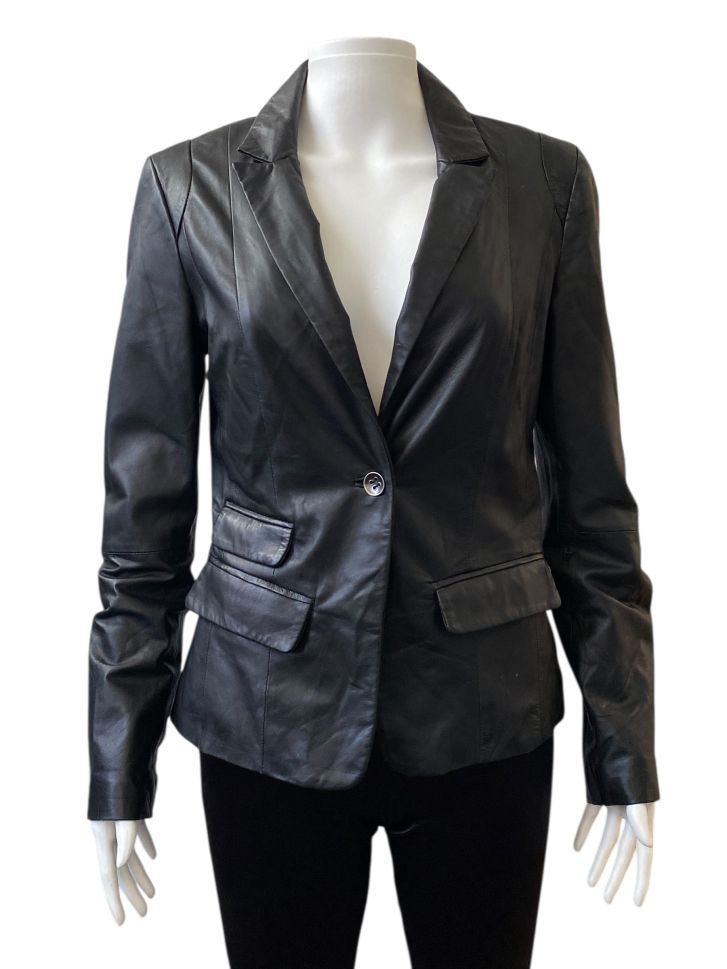 Дамско яке от естествена кожа. Има следи от употреба. Според нашите размери, якето е S(90cm).