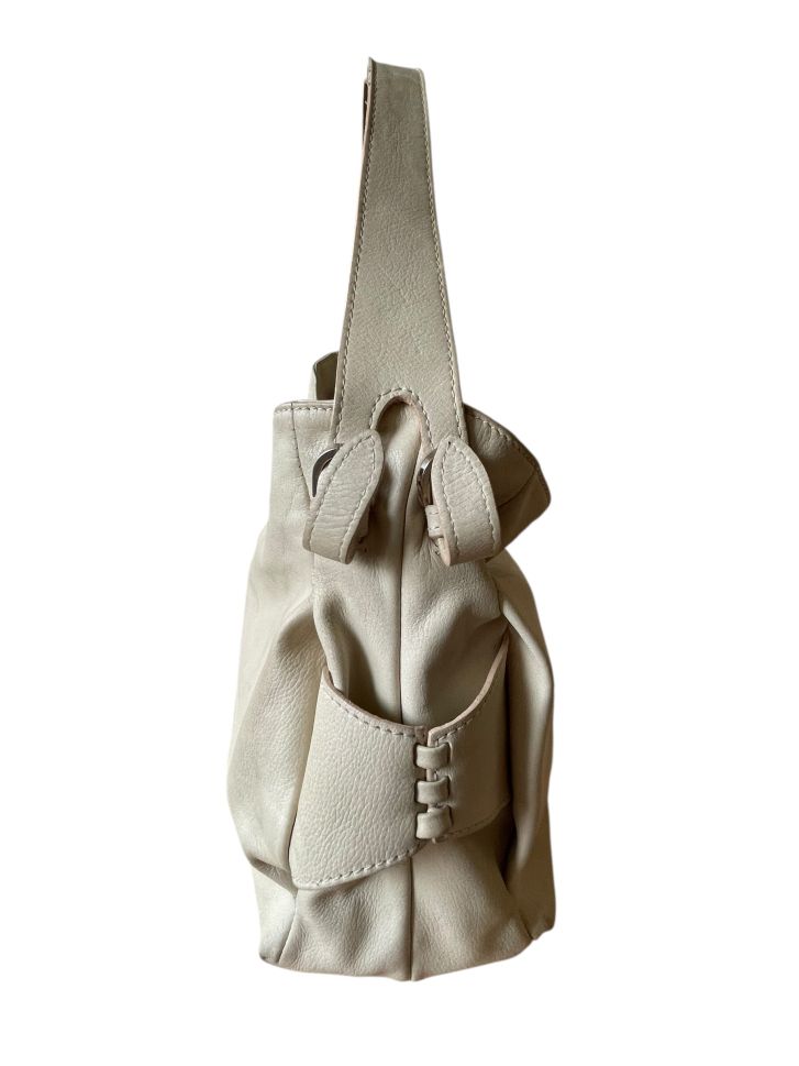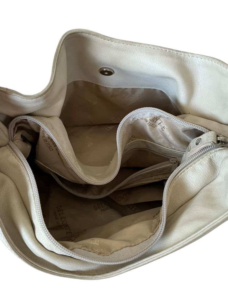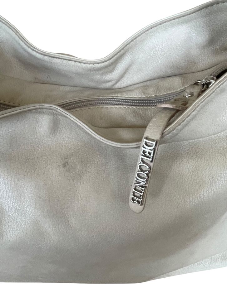 Кожена дамска чанта DEL CONTE. Има леки дефекти/следи от употреба, изобразени са на снимките