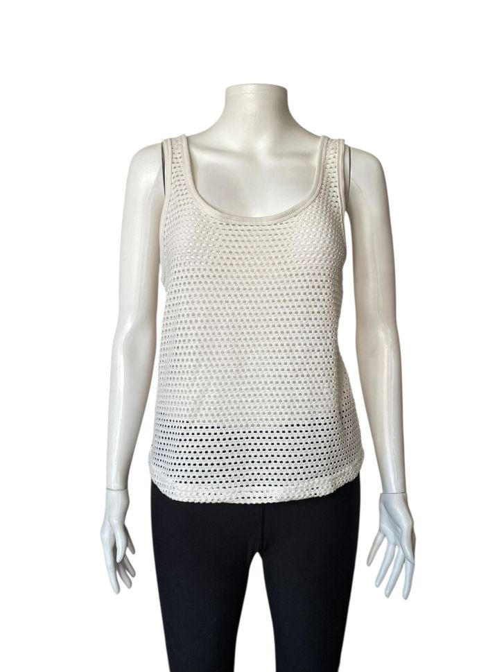 Дамски летен потник SYLVIE MELS L. Гръдната обиколка е 100cm (= M, според дамските ни размери), но с леко разтягане, потникът отговаря на написания си размер по етикет (110cm = L).